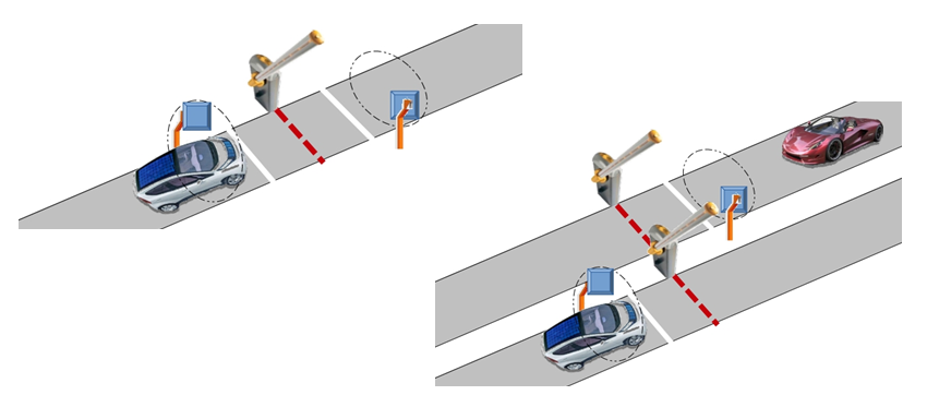 Благодаря одноканальному считывателю в виде моноблока с интегрированной антенной у пользователя появляется возможность простого и практичного построения бюджетной системы дальней идентификации для односторонней точки проезда. Кроме того, с помощью двух моно-считывателей можно легко построить двунаправленную (въезд/выезд) точку проезда с одним шлагбаумом, в случае одной реверсивной полосы, или с двумя шлагбаумами, в случае раздельных полос въезда и выезда. При этом места размещения считывателей можно выбирать независимо от расстояния между считывателями в оптимальных для эффективного считывания местах, с учетом дальности считывания до 2х метров.
